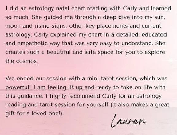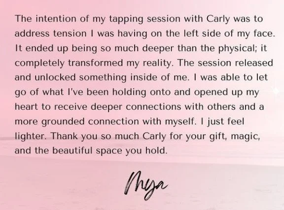 Carly's coaching has given me unparalleled clarity on my purpose and evolutionary path. I struggled to navigate significant life shifts and stay consistent and confident in my goals. Carly's work has helped me identify deeply rooted, subconscious, limiting beliefs that kept me stuck. Her work helps me reframe my perspective and accelerate my personal growth. I'm able to achieve my goals much more easily now. - C.L.P.